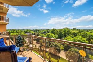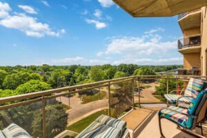 Regency Towers...Boutique building at West end of Downtown with beautiful view of river and parkland. Huge windows looking west with the panoramic views to enjoy on TWO balconies. Huge 2 bedroom unit with over 1700 square feet with 2 full bathrooms..including Primary bedroom with full ensuite , a very large walk-in closet and access to second balcony. Separate laundry room, huge dining room open to expansive great room with plenty of natural light. Updates to kitchen include new countertops, built-in oven and cooktop. Power blinds included. TWO UNDERGROUND PARKING SPOTS PLUS A LOCKER. Walk to the market, park trails, restaurants, shops, Canada Life arena and Old South Wortley Village...truly an outstanding location. A special opportunity and fantastic value for this square footage. Don't miss out. 6 appliances included.